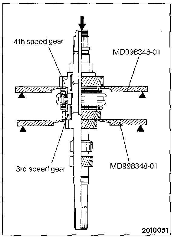 Remove the 3rd speed gear together with 3rd-4th speed synchronizer assembly and bearing sleeve using the special tool as illustrated.