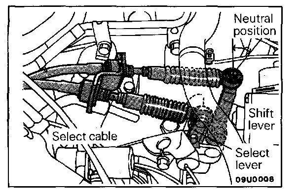 NOTE: It the transaxle side shift lever is put into the neutral position, the transaxle side select lever is set in neutral position.
