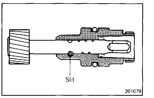Install the spring pin in such a way that its slit does not face the gear shaft.