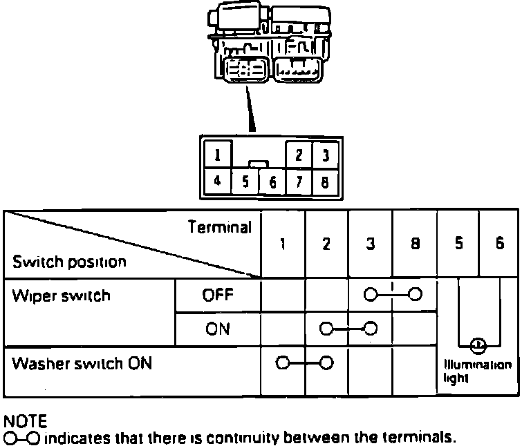 Fig. 60 Rear Wiper & Washer Switch Continuity Chart: