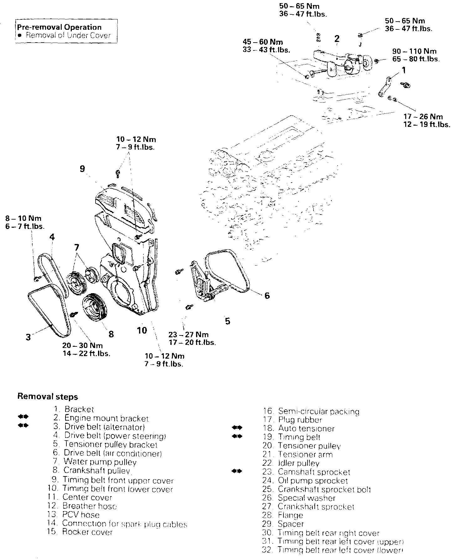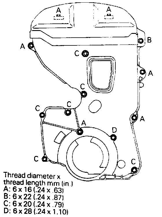- The dimensions of the installation bolts for the timing covers differ according to the installation location, so be sure not to install the bolts in the incorrect locations.