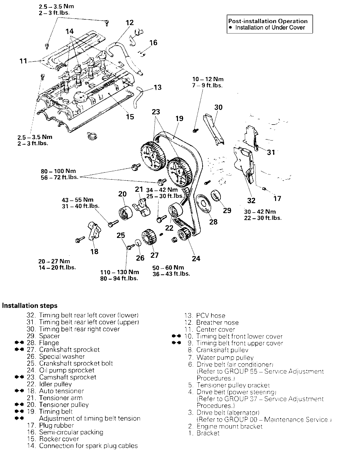 10. INSTALLATION OF TIMING BELT LOWER COVER / 9. TIMING BELT UPPER COVER