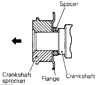 - Install the crankshaft sprocket in the correct direction as shown.