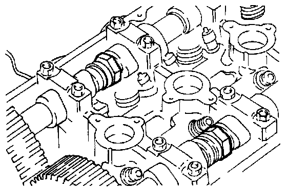 - Using a wrench, hold the camshaft at its hexagon (between the No. 2 and No. 3 journals) and tighten the bolt to specification.