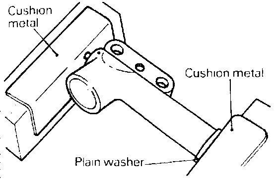- If the plug at the bottom of the auto tensioner protrudes, apply a plain washer as illustrated to prevent the plug from being in direct contact with the vise.