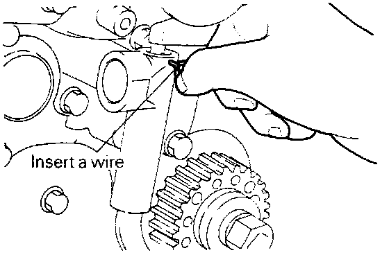 (c) Insert a wire 1.4 mm (.055 in.) in diameter into the set holes.