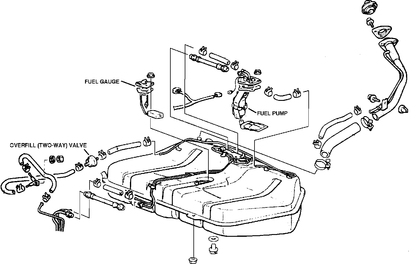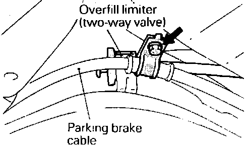 The overfill limiter is mounted in-line, in the vapor line, at the forward end of the fuel tank.