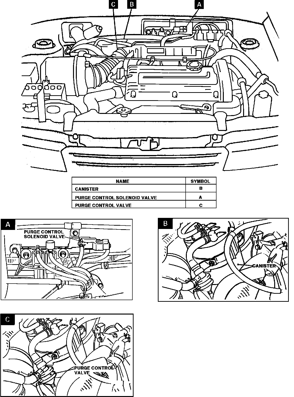 Purge Control Solenoid Valve: Rear, LH side of engine compartment