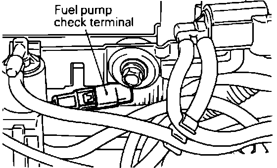 2. Using an Ohmmeter, check for continuity between the fuel pump check connector and the fuel pump harness connector terminal 2.