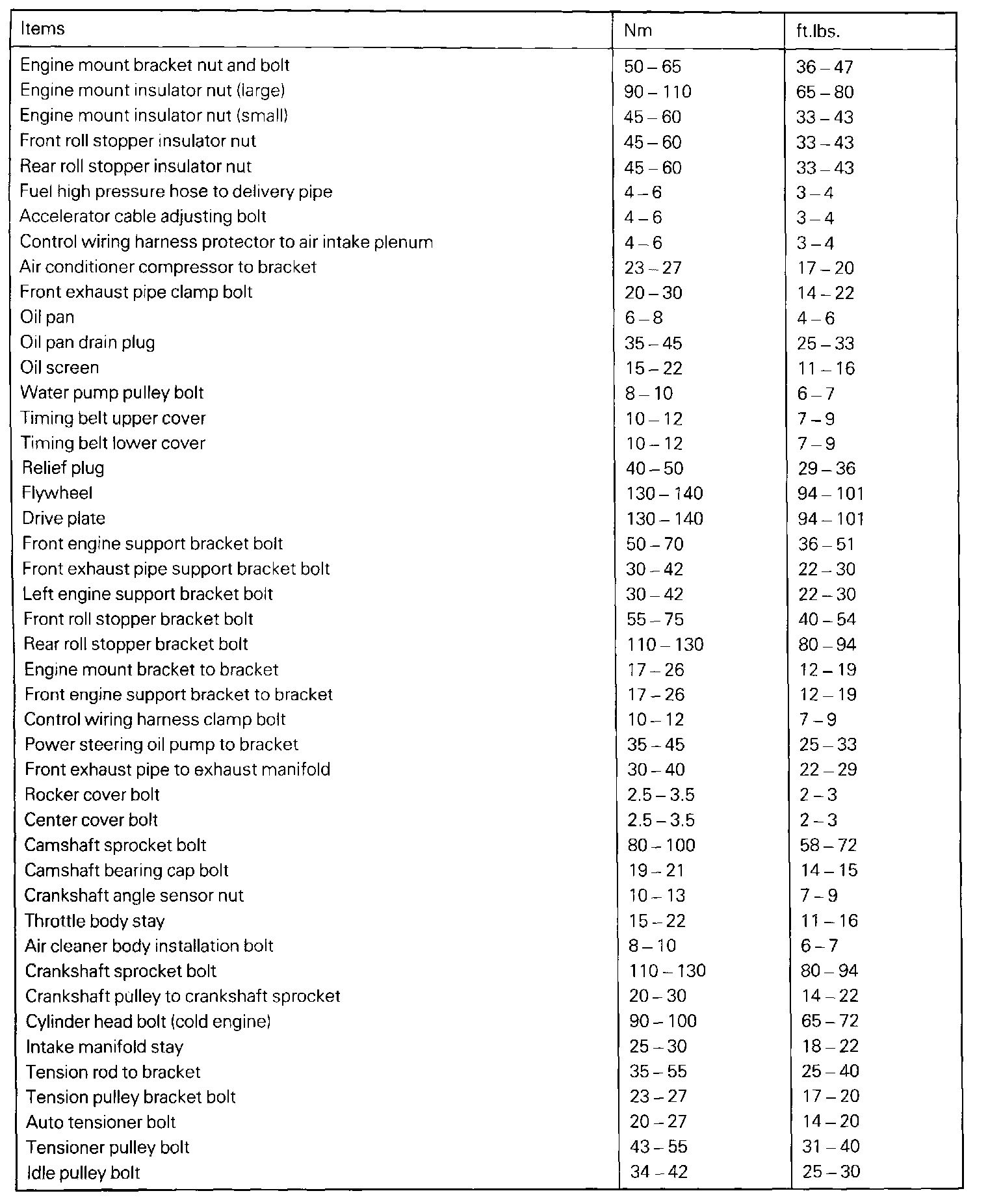 Mirage L4-1597cc 1.6L DOHC