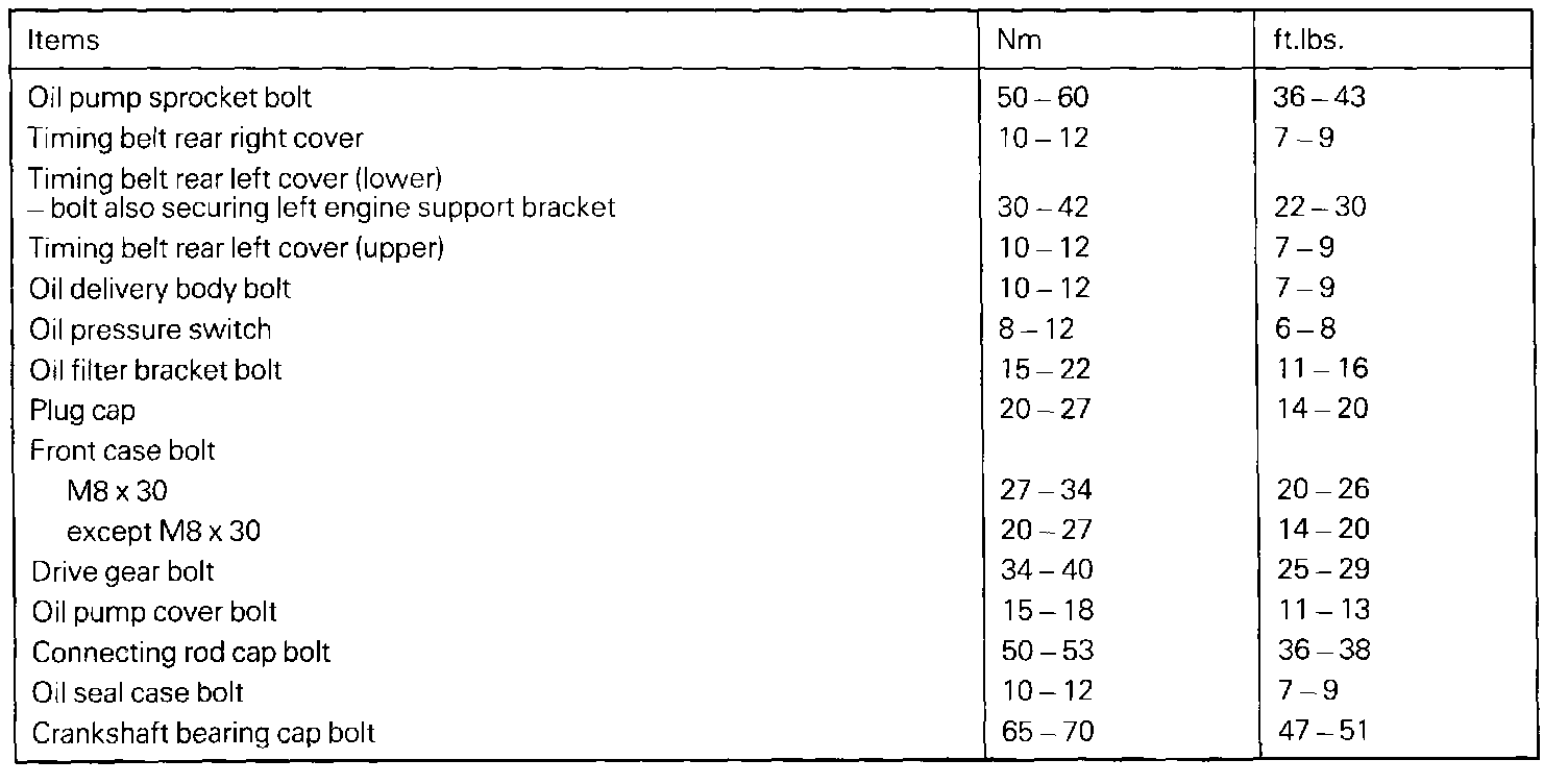 TORQUE SPECIFICATIONS