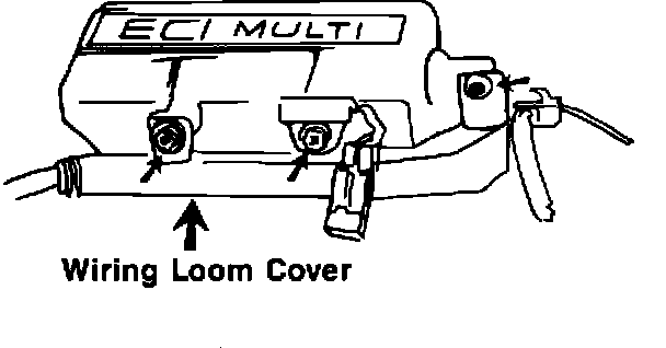 Remove the three bolts attaching the square shaped ECU wiring loom cover. The cover is attached to the surge tank in the engine compartment. Refer to Figure 5.