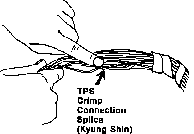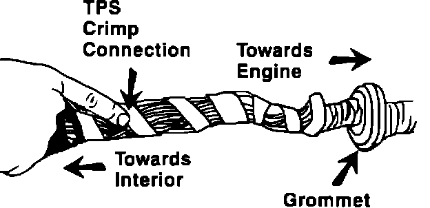 The Throttle Position Sensor (TPS) crimp connection splice is located about eight inches from the bulkhead grommet on the interior side of the ECU wiring harness. Refer to Figure 6.