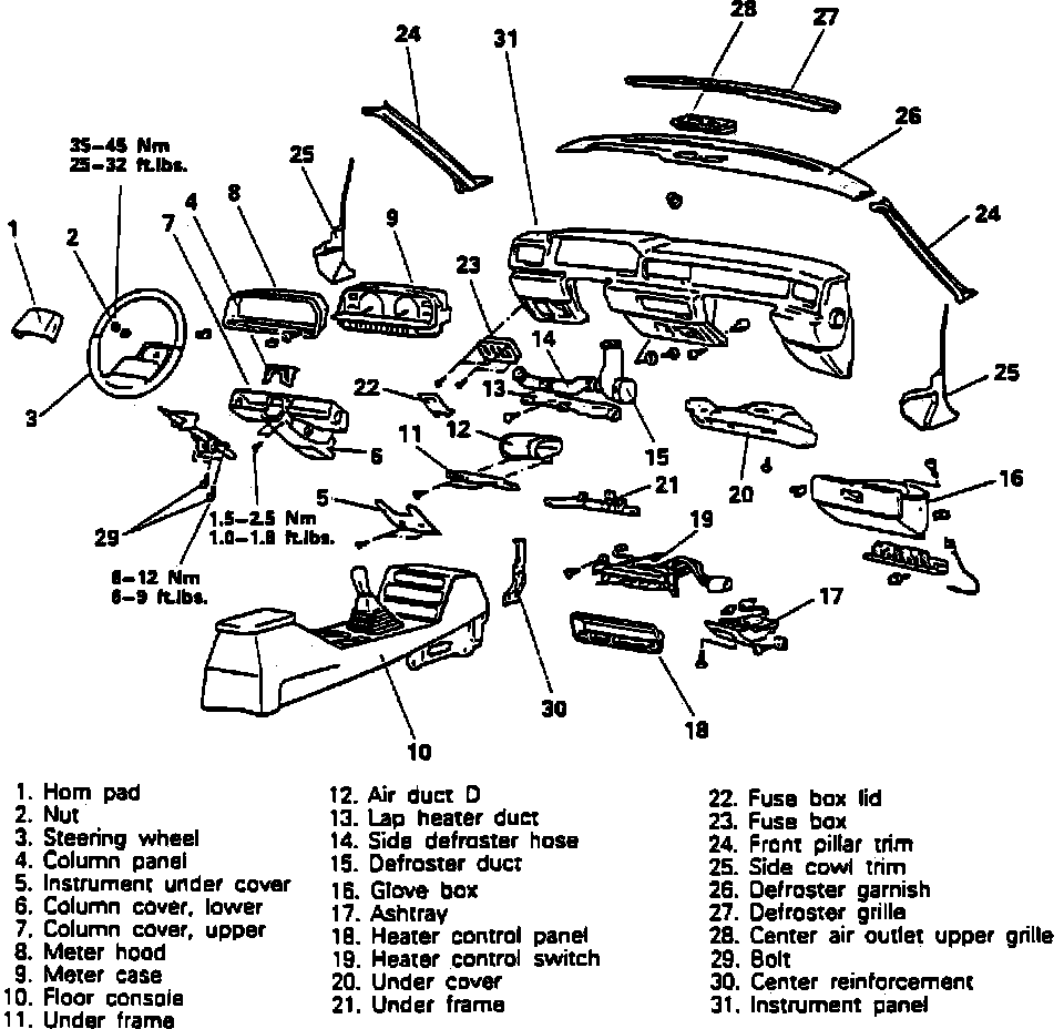 18. Remove instrument panel retaining nuts driver and passenger seat side.