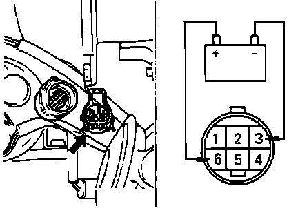 4. Apply battery positive voltage to terminal 2 and battery negative to terminal 4, then check for continuity between terminals 3 and 4, continuity should exist.