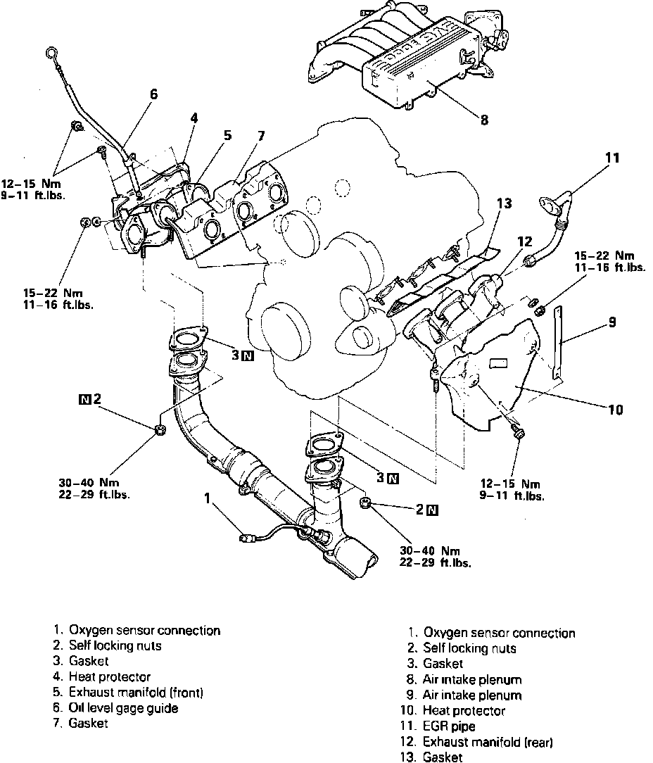 6. Remove EGR tube from rear (left) manifold, then disconnect oxygen sensor lead.