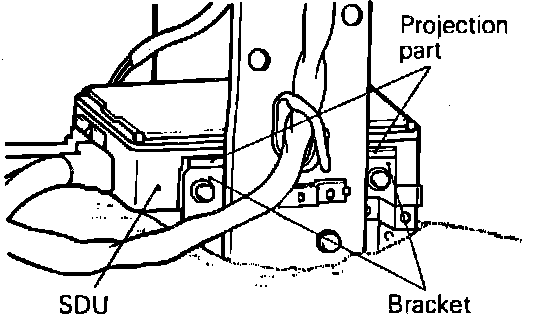 i. Place projection part of SDU against bracket as shown, Fig. 24, then securely install SDU. Failure to correctly install SDU may cause the SRS not to activate properly or result in untended deployment.
