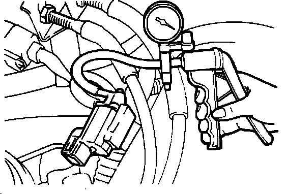 3. Connect a hand vacuum to the port that the red-stripped hose was disconnected and apply vaccum.