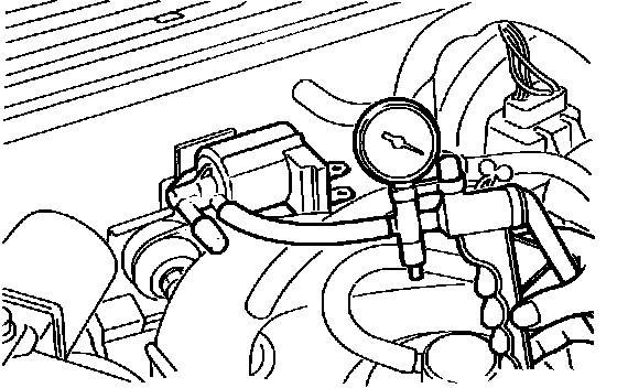4. Apply 400mm Hg or 1.6 in. Hg of vacuum while the engine is at idle and note that vacuum is held.