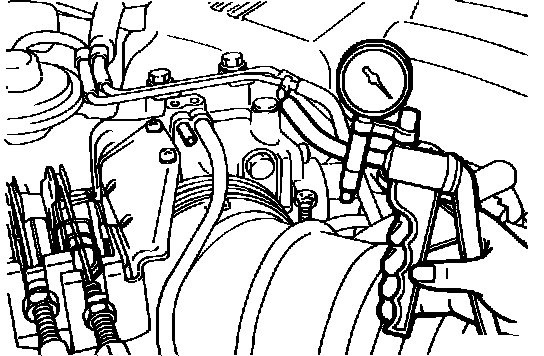 2. While the engine is cold (coolant temperature less than 20 degrees C or 68 degrees F) race the engine while observing the vacuum gauge of the vacuum pump and note that there is no vacuum.