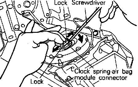 b. Using a screwdriver, carefully pry and disconnect clockspring connector. Use caution not to apply excessive force to connector.