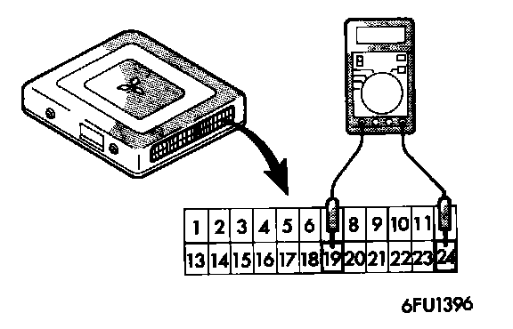 (2) If the multi-use tester is not used; connect a digital-type Voltmeter between terminal (24) and terminal (19) of the engine control unit.