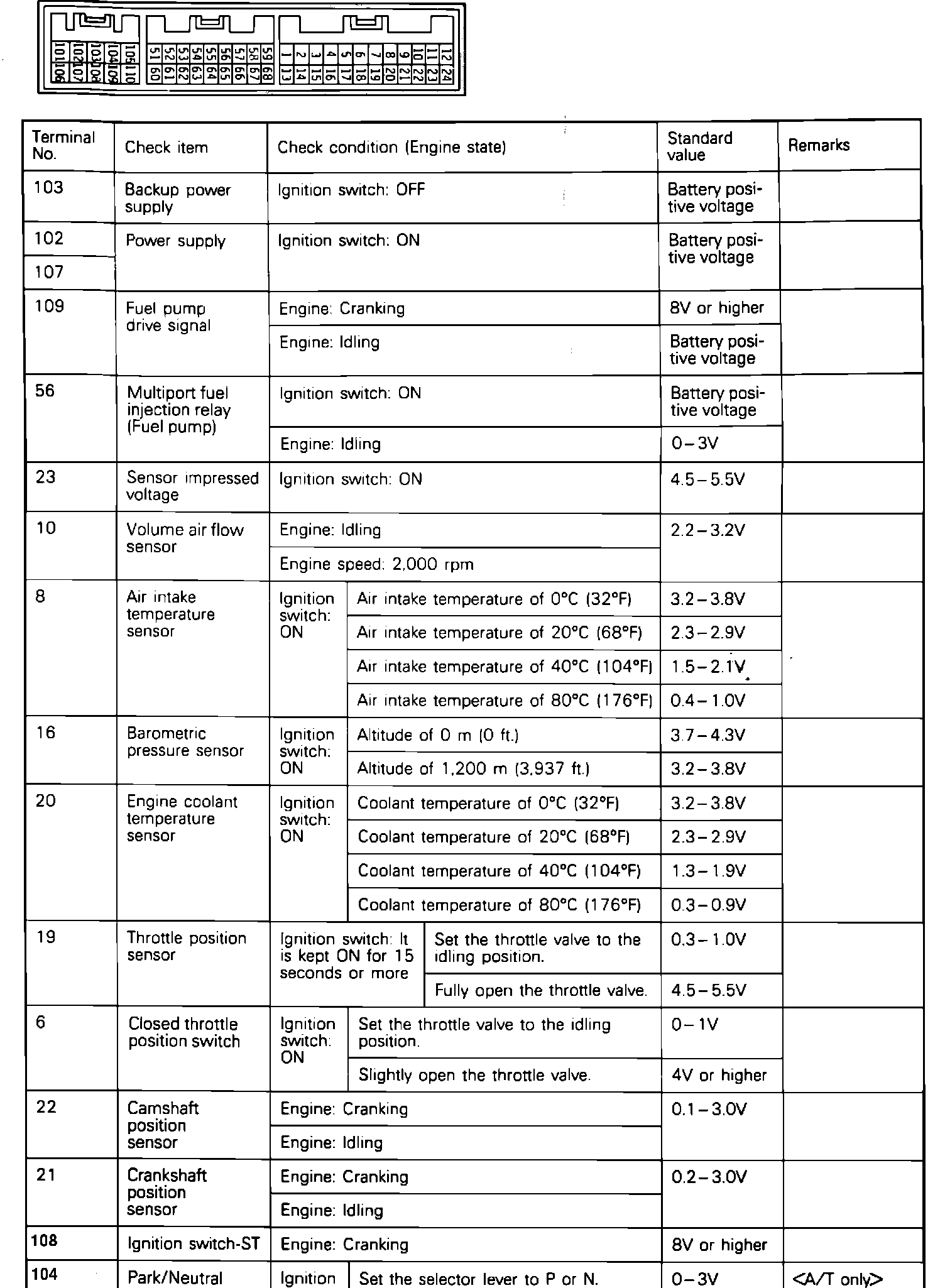 z;����ECU Terminal Voltage Chart: