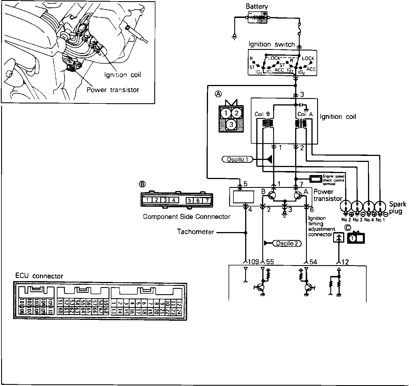 Ignition Coil And Power Transistor Circuit: