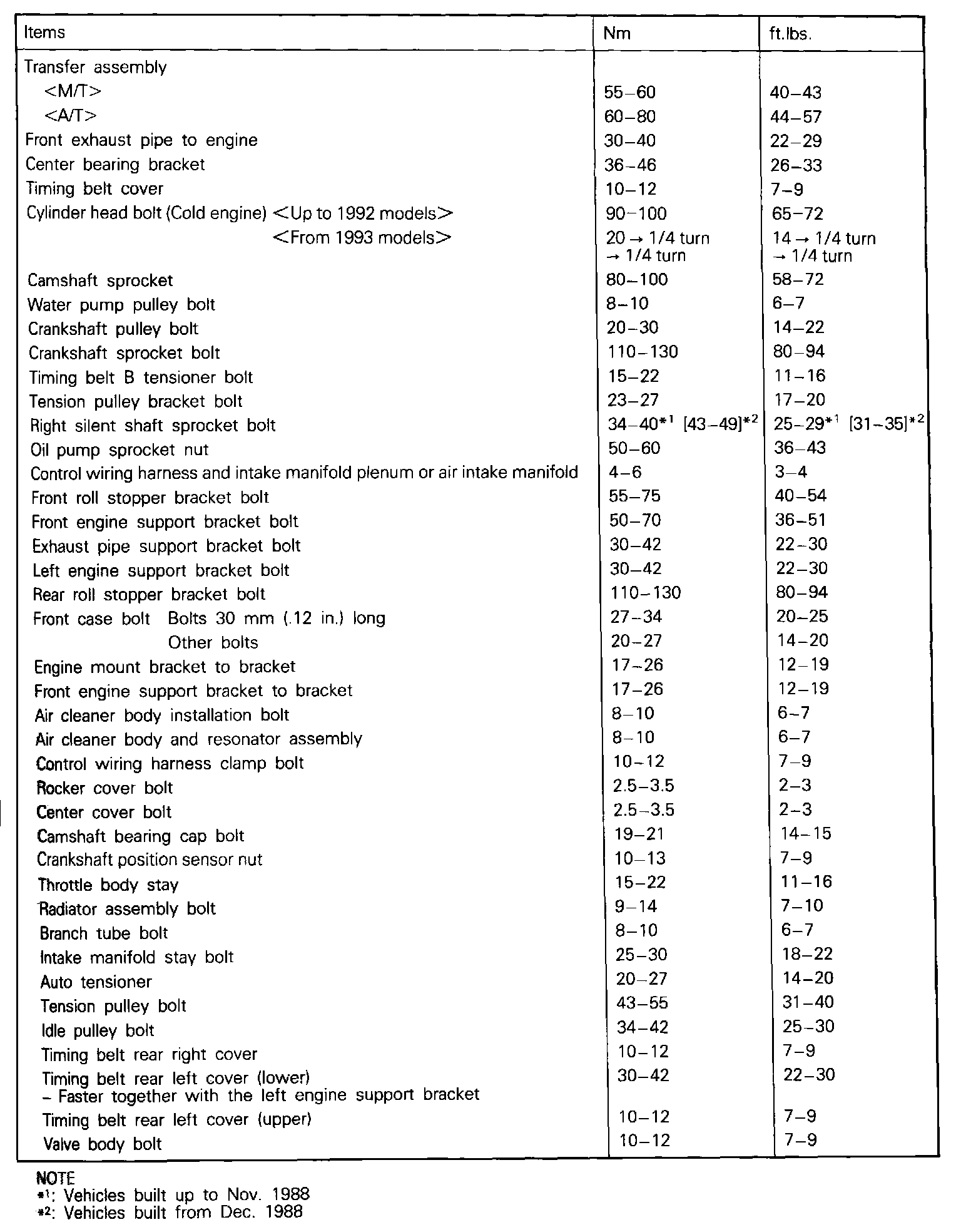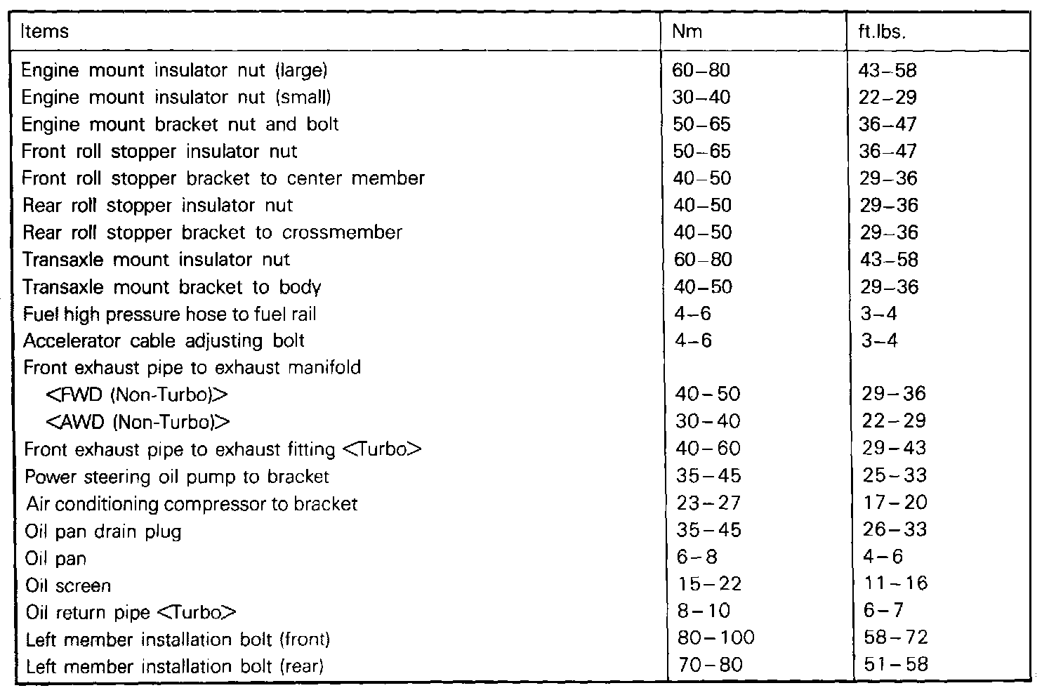 Torque Specifications