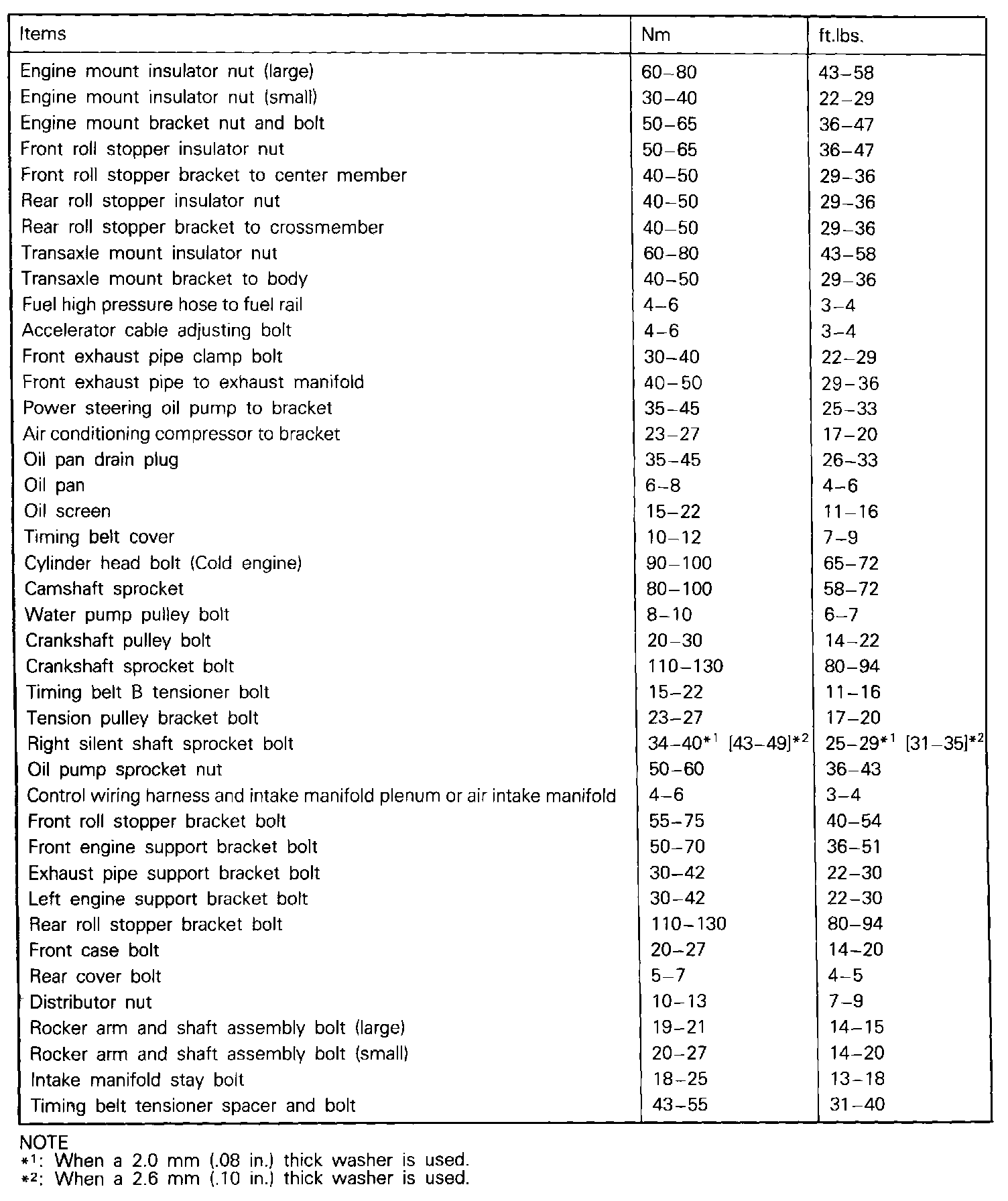 Torque Specifications