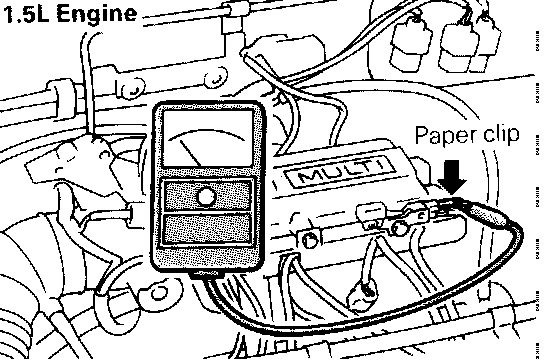 2. Insert a paper clip from wire side of the connector, and connect a tachometer to the paper clip.