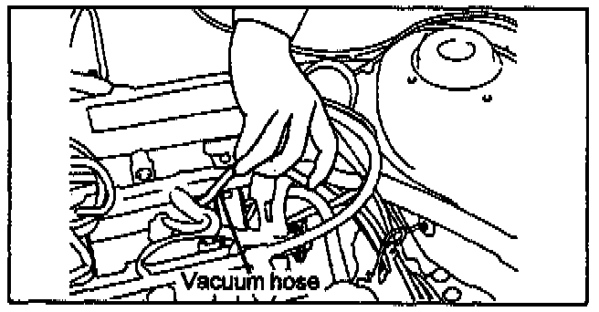 10. Start the engine and allow to idle. Disconnect the vacuum hose at the pressure regulator and plug the hose end.