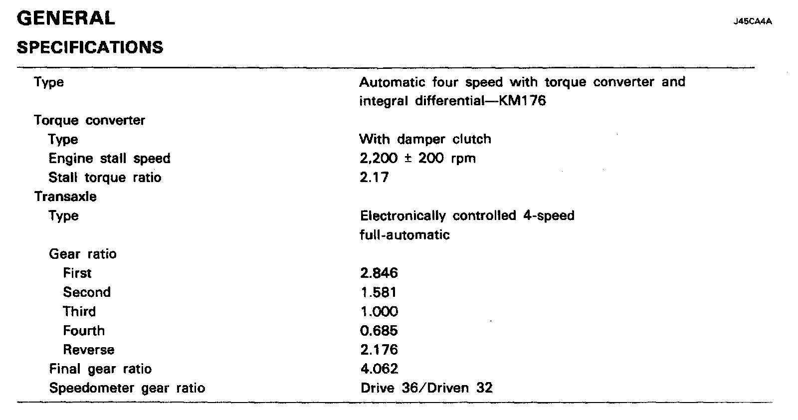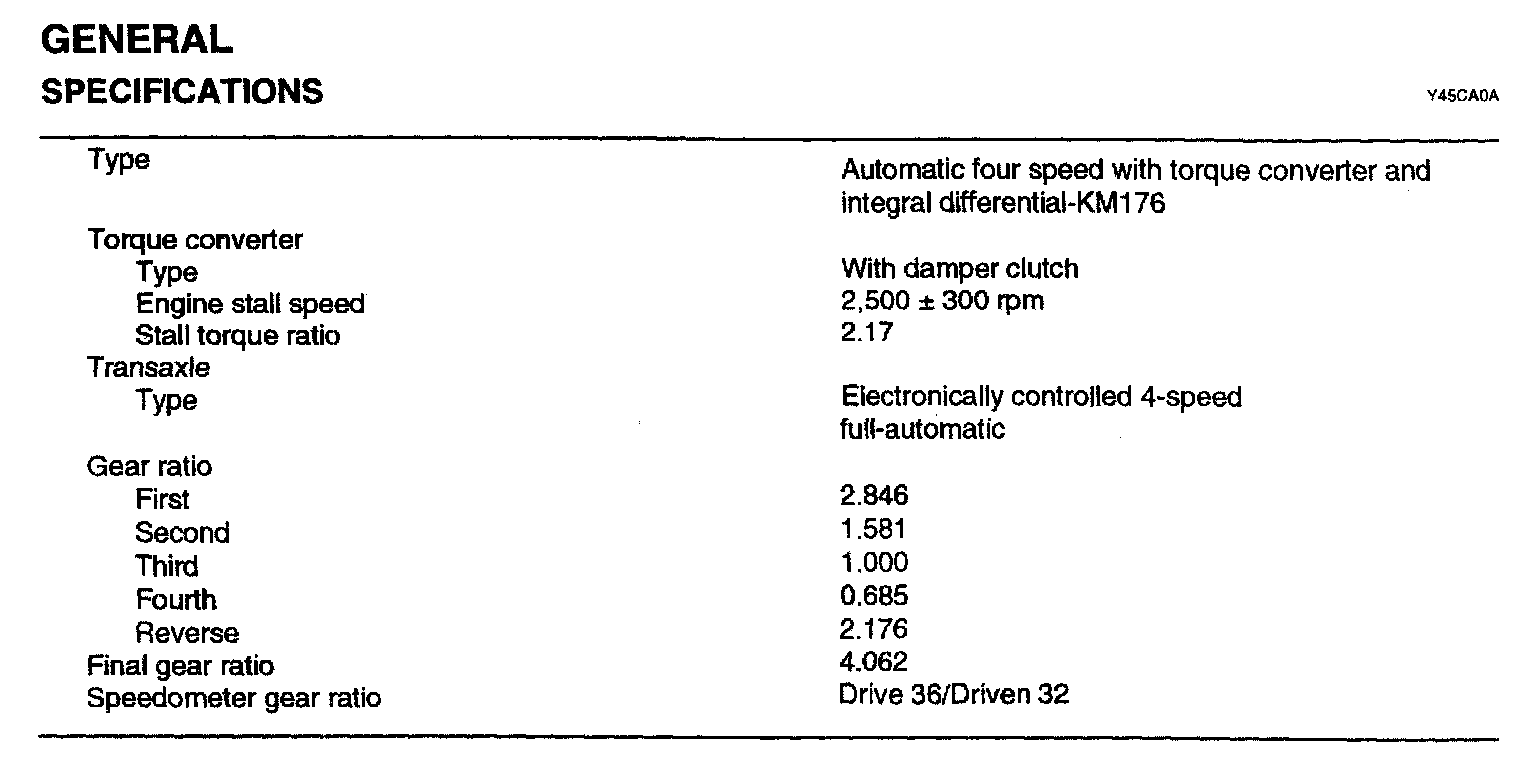 KM176 4-spd A/T, Gear Ratios ('94):