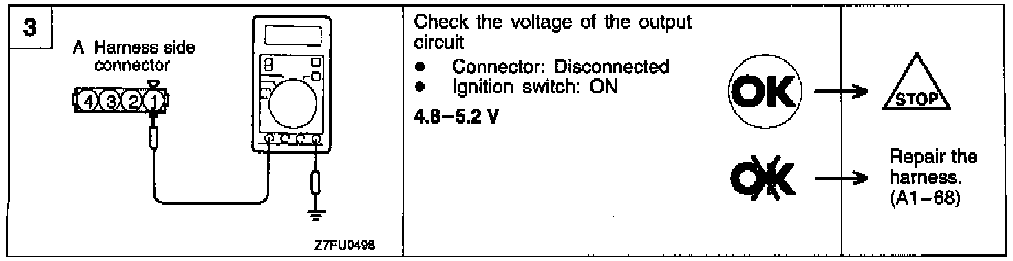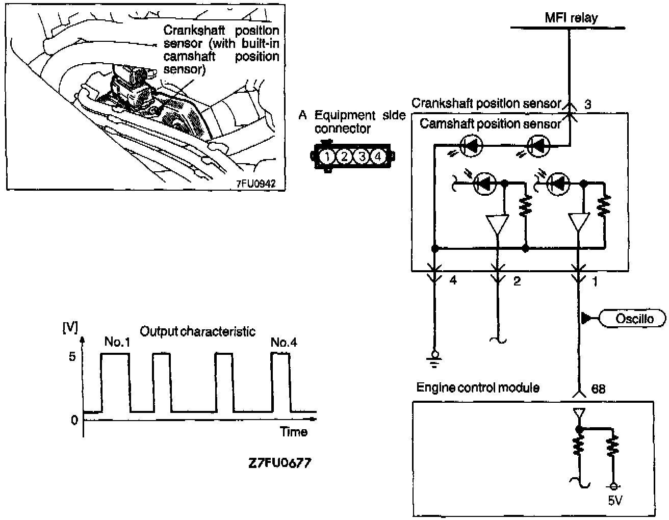 Hint 2: If the sensor outputs a pulse signal when the ignition switch is turned ON (with the engine not running), a faulty camshaft position sensor or engine control module is suspected.