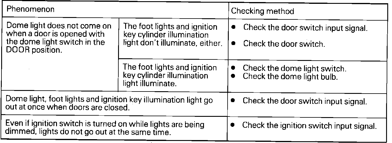 Dome, Foot, And Ignition Key Cylinder Illumination Troubleshooting: