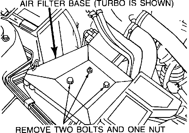 3. Remove the two 10 mm bolts and one 10 mm nut holding the air filter base. Remove the air filter base. The A-67 connector is now accessible.