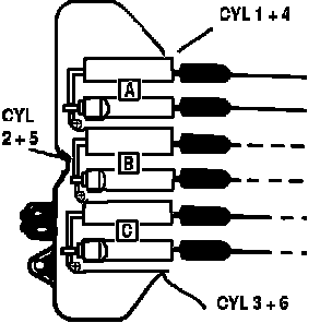 The Ignition Coil pack is located on the right rear cylinder head and consists of 3 coils.