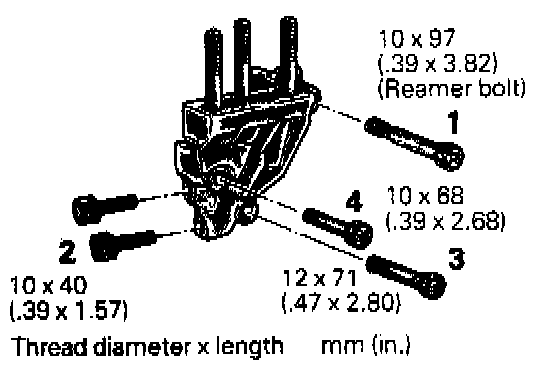 Since the mounting bolts of engine support bracket are different in size depending on location, insert them in numbered sequence.