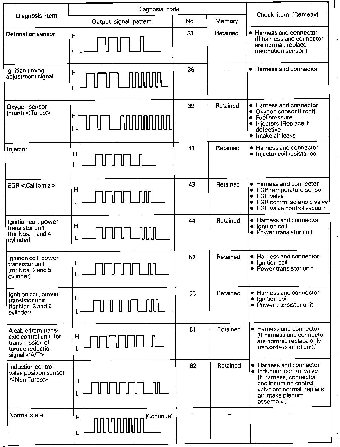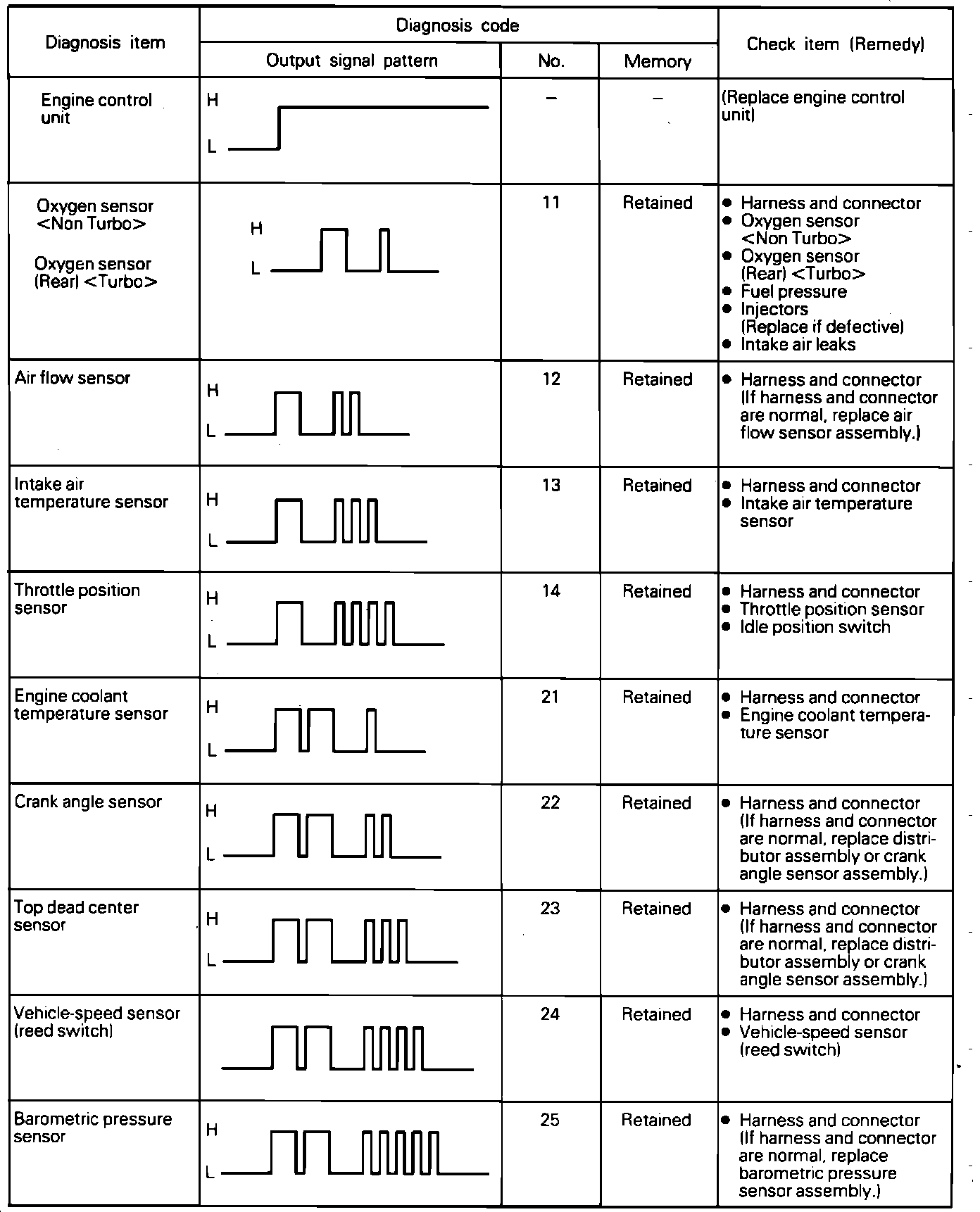 - There are fourteen diagnostic items (including normal operation) that will generate diagnostic codes.