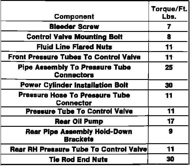 Four Wheel Steering Tightening Specifications