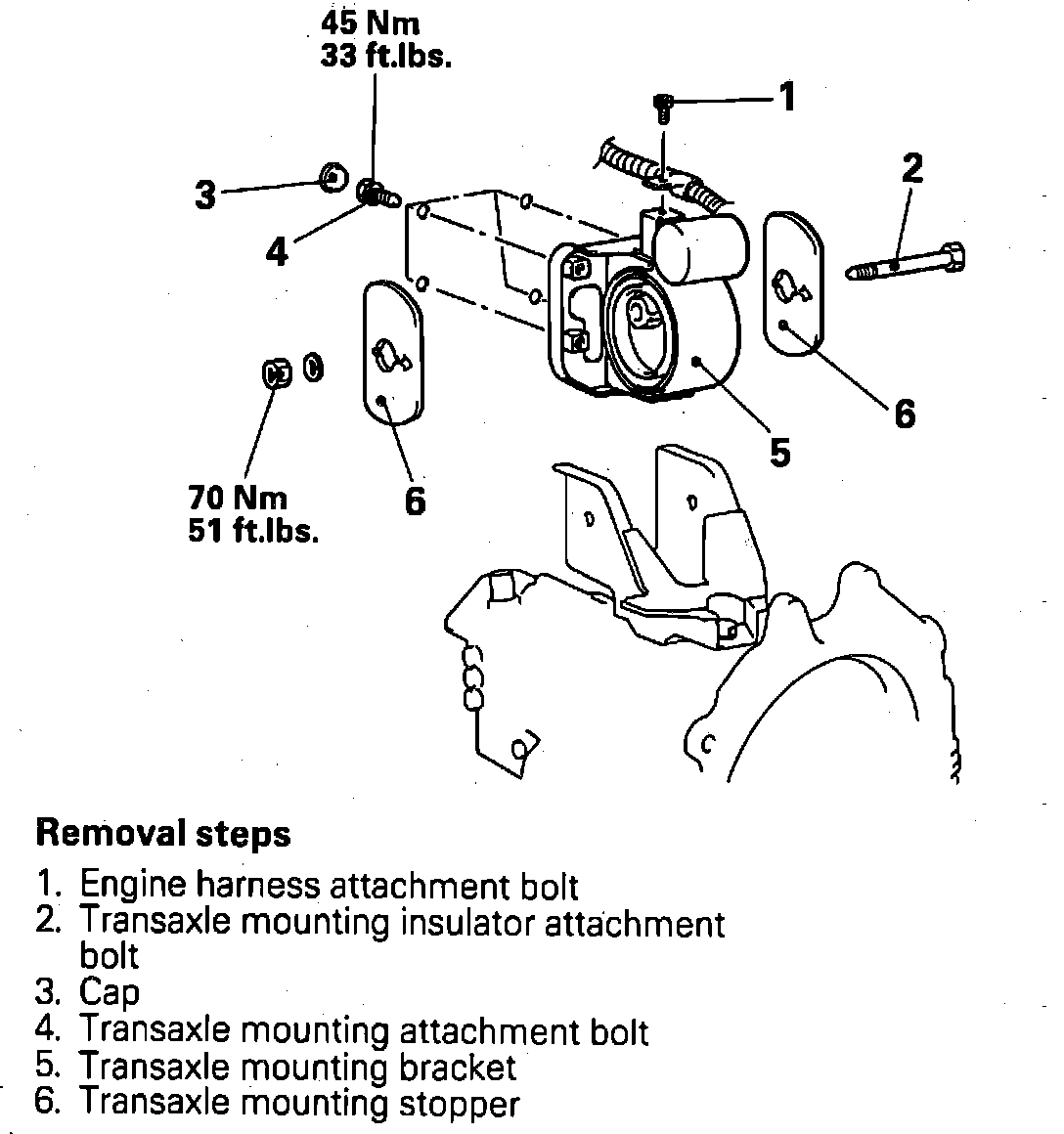 2. Using suitable floor jack raise transaxle to release weight off mounts.