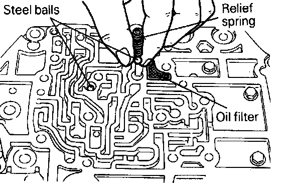 (1) Install the oil filter, two steel balls, and spring to the intermediate plate.
