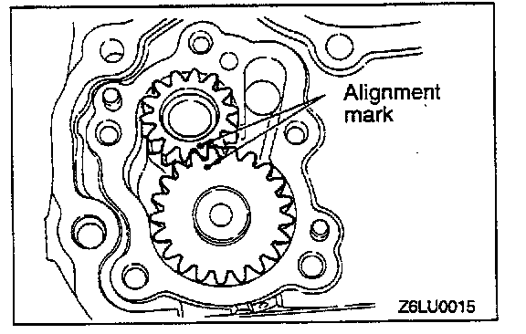 1. Apply engine oil amply to the gears and line up the alignment marks.