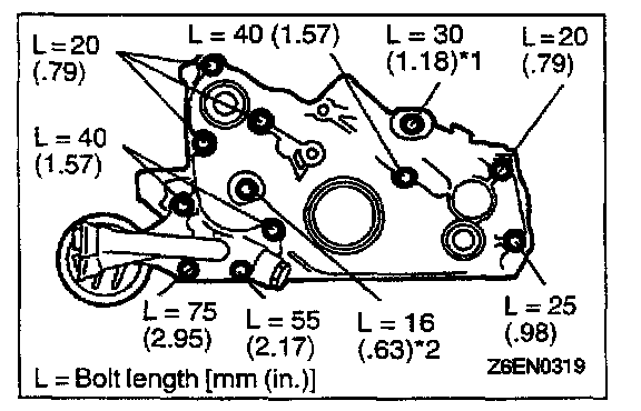 2. The bolt marked with *2 in the illustration is for engine without counterbalance shafts only.