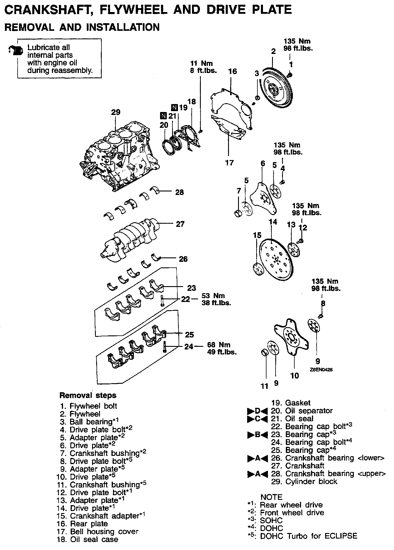 CRANKSHAFT, FLYWHEEL AND DRIVE PLATEREMOVAL AND INSTALLATION