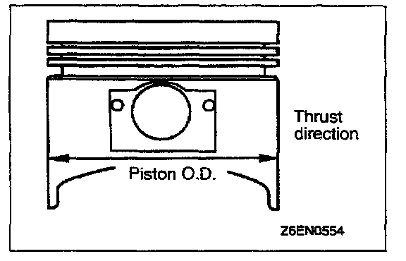 2. Measure outside diameter of piston to be used. Measure it in thrust direction as shown.