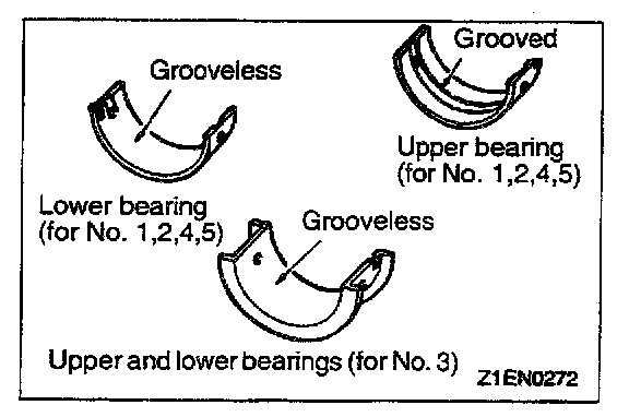 1. The upper bearings (on the cylinder block side) for Nos. 1, 2, 4 and 5 journals are provided with oil groove.