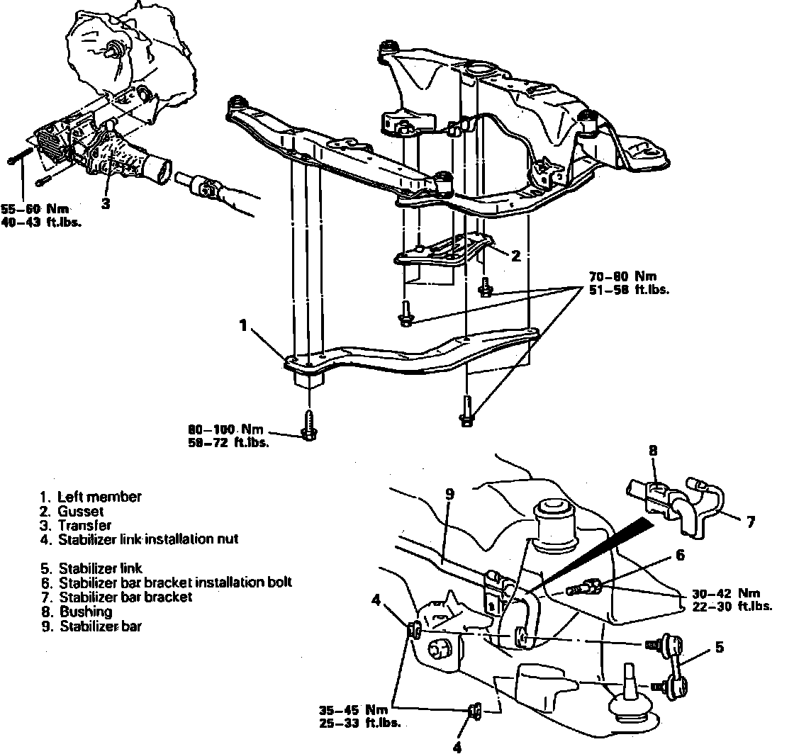 b. Pull out left side stabilizer bar edge, between the driveshaft and lower arm.