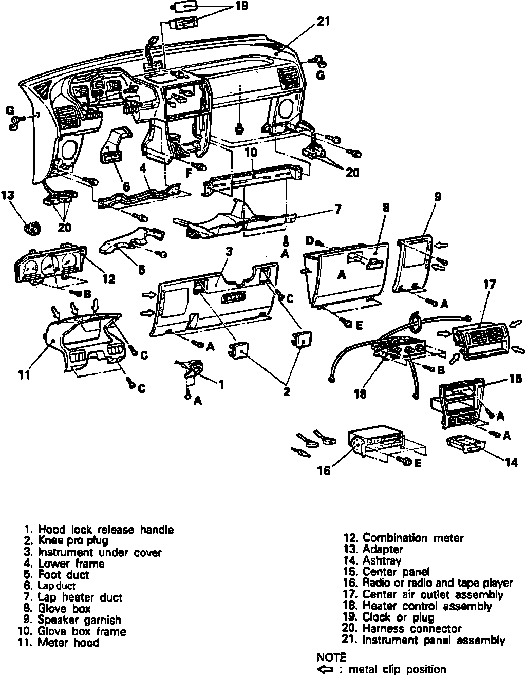 12. Remove ashtray, center panel, then radio or radio and tape player.