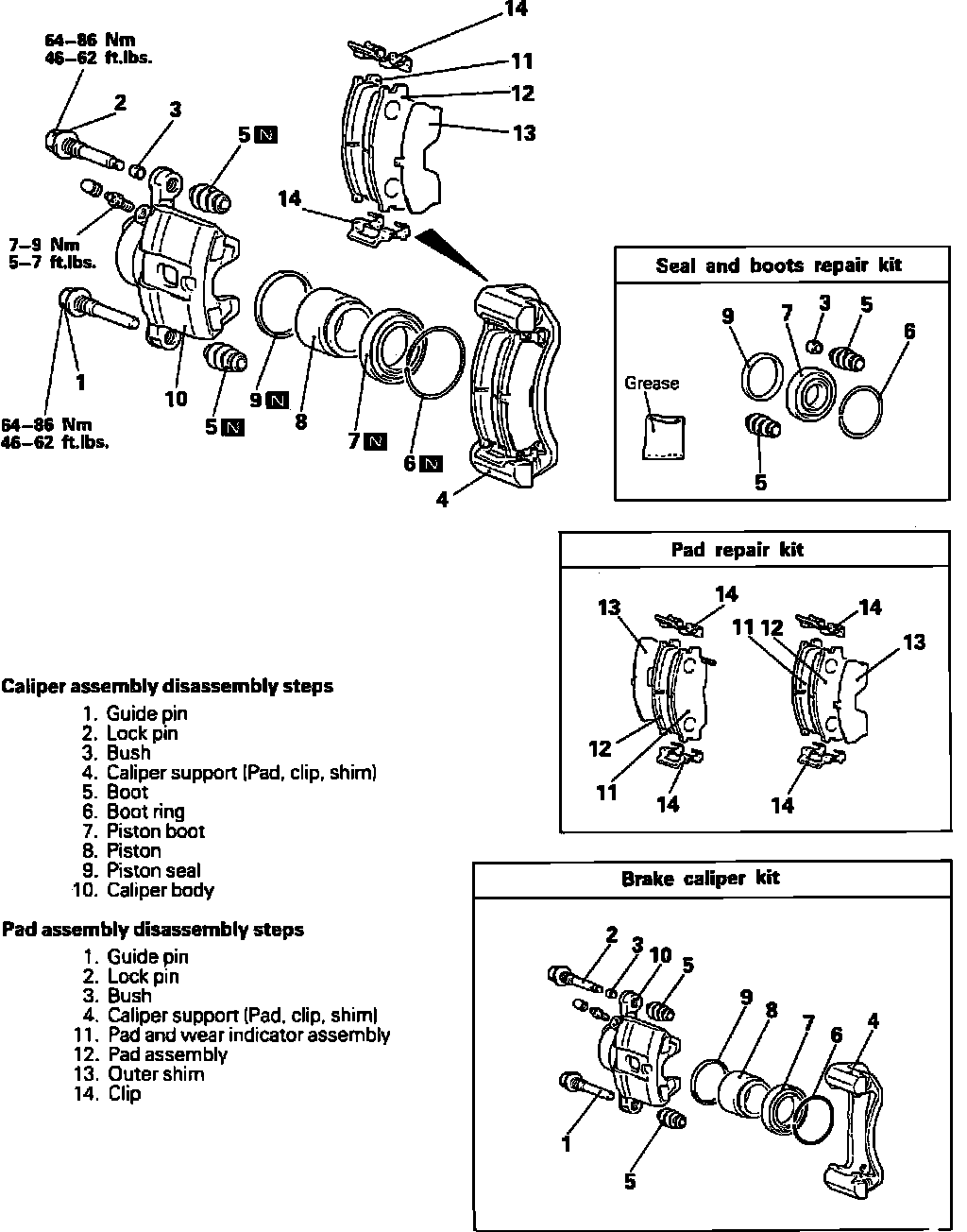 7. Apply a coating of suitable grease to the pad and anti-squeak shim contact surface and to the anti-squeak shim and inner shim contact surface. Ensure that grease does not come in contact with brake pad assemble.